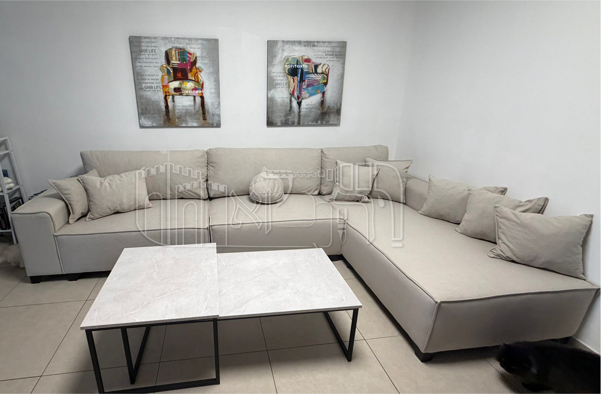 סלון בד מאנגו מס 3 עם שני שולחנות סלון